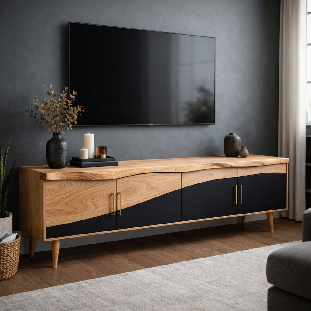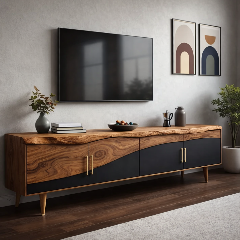Live Edge TV Cabinet with Black and Wood Contrast