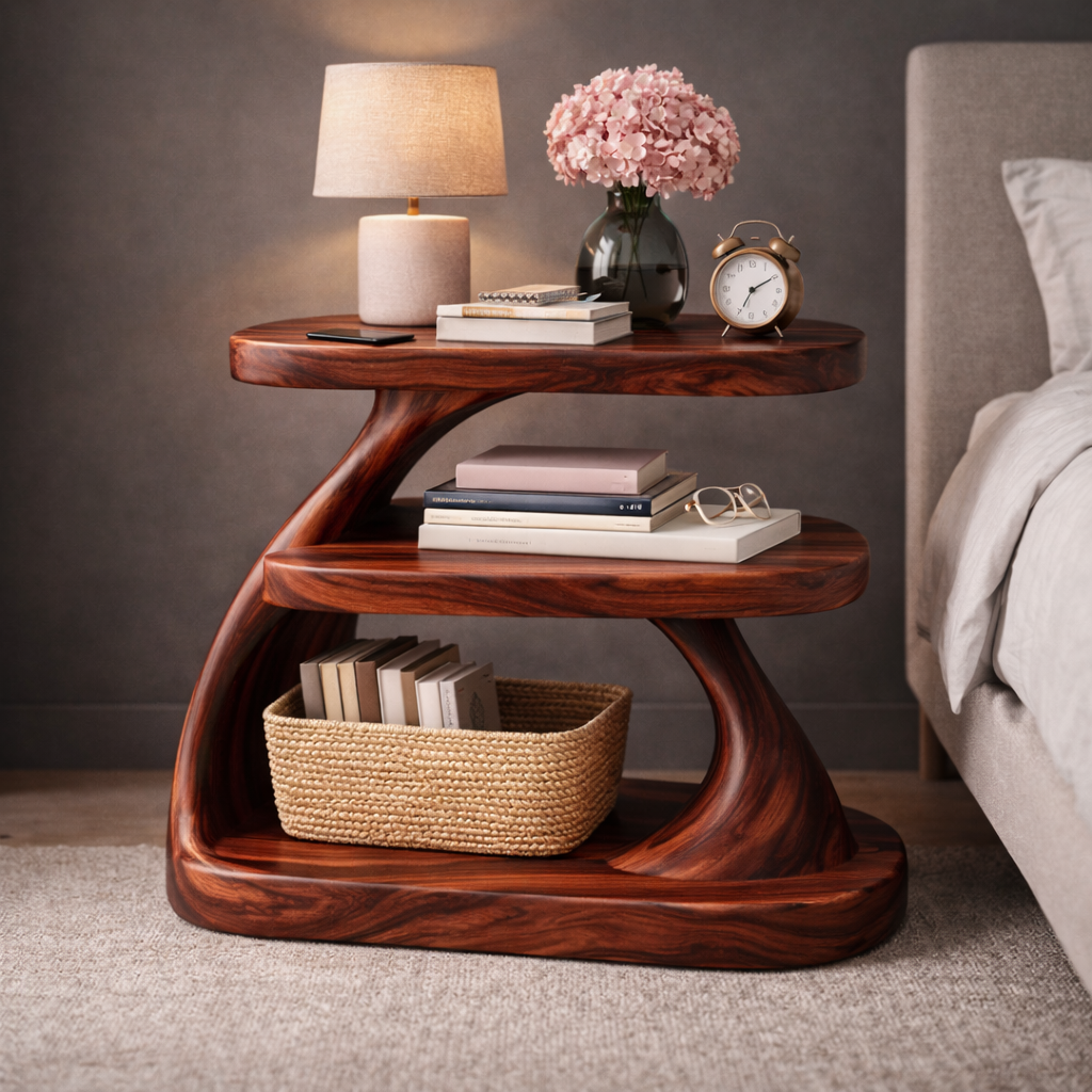 Sculptural Wooden Side Table with Organic Curves and Elegant Storage