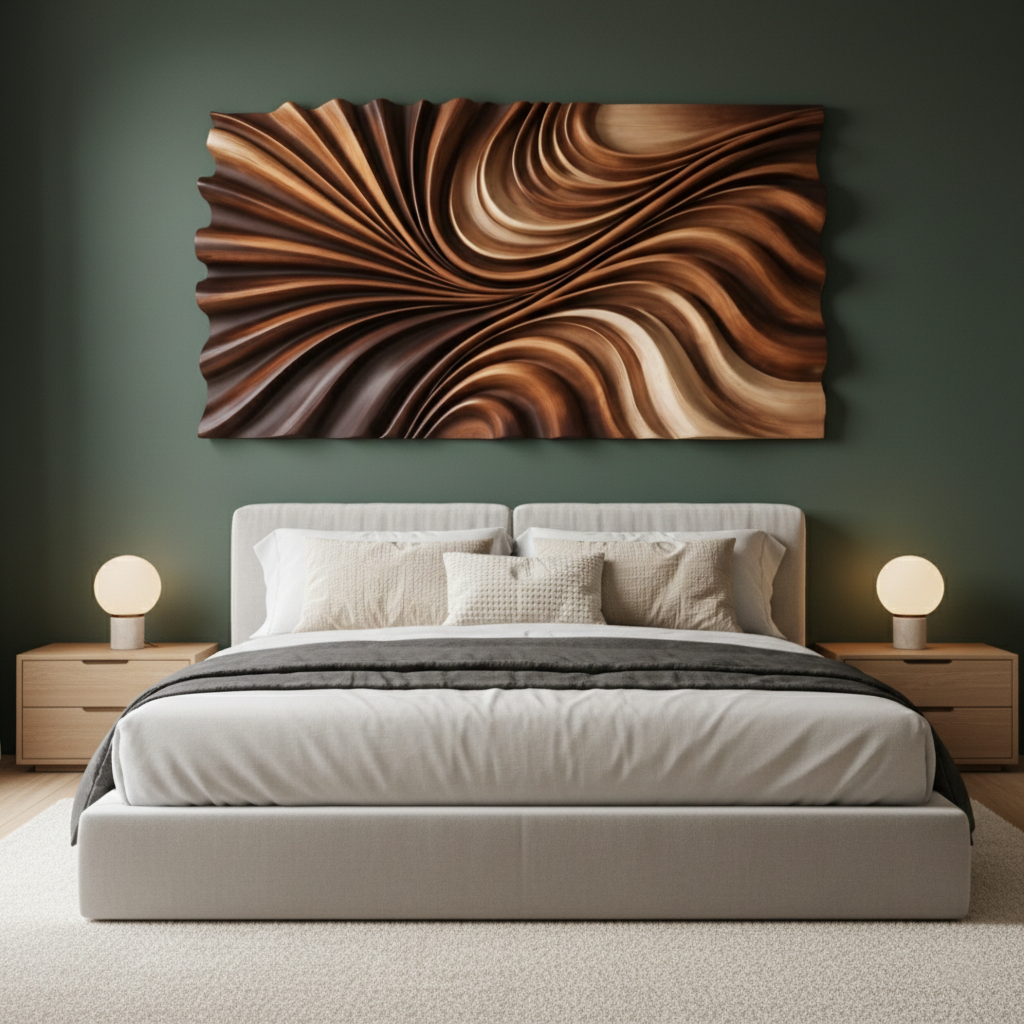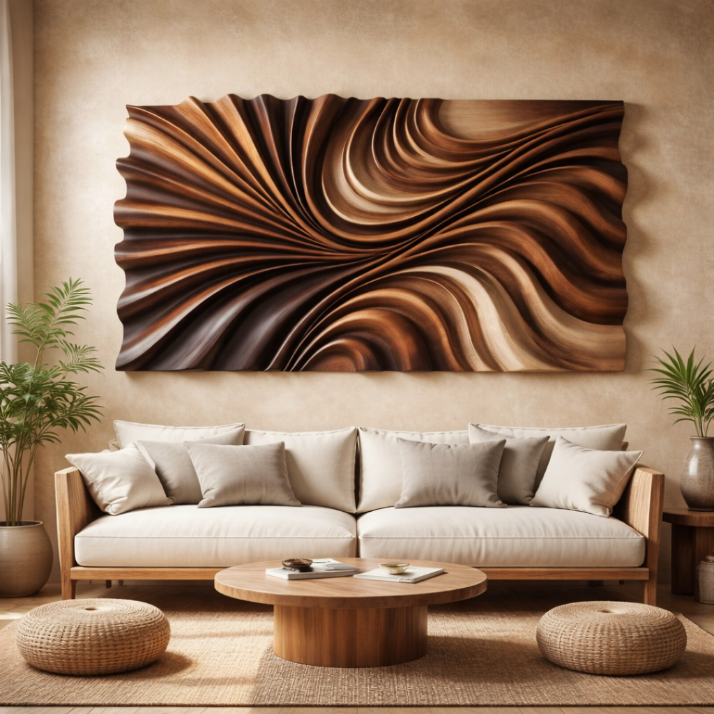 Wave-Inspired Wall Sculpture in Sculpted Wood